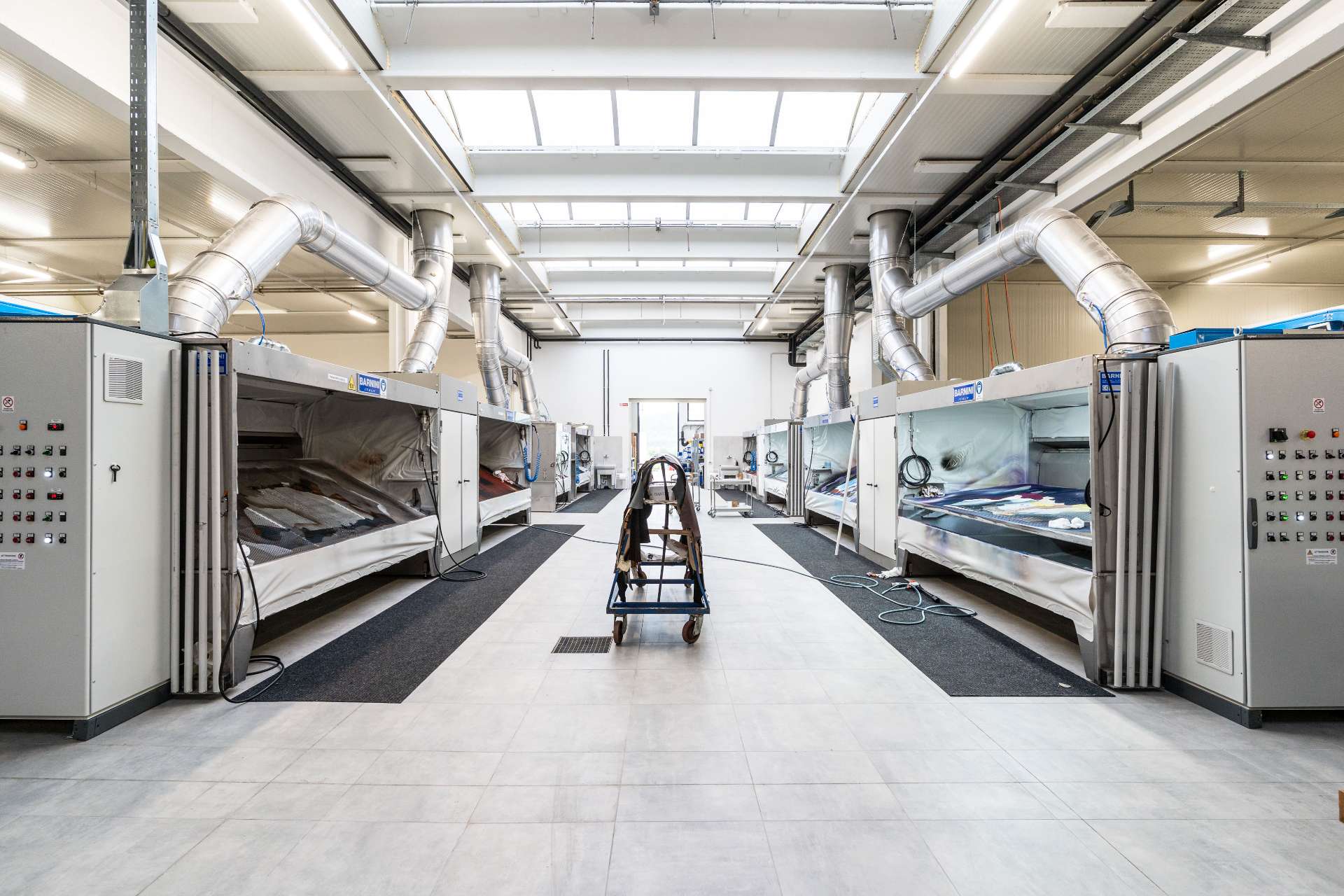 - Area dedicata di 8 cabine di spruzzatura manuale e relativi forni di essiccazione.
